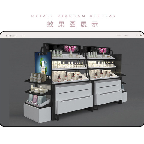 Centro Comercial cosméticos quiosco para marcas de maquillaje cosméticos estante de exhibición cosmética tienda estante de plata
