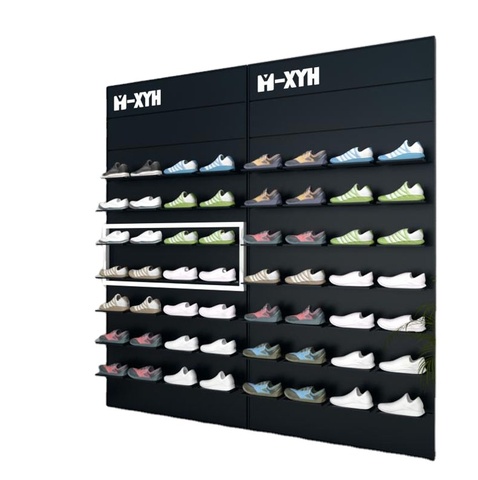 Estante de exhibición con ruedas para zapatos, estante de exhibición de metal para tienda, estante de acero increíble para zapatos